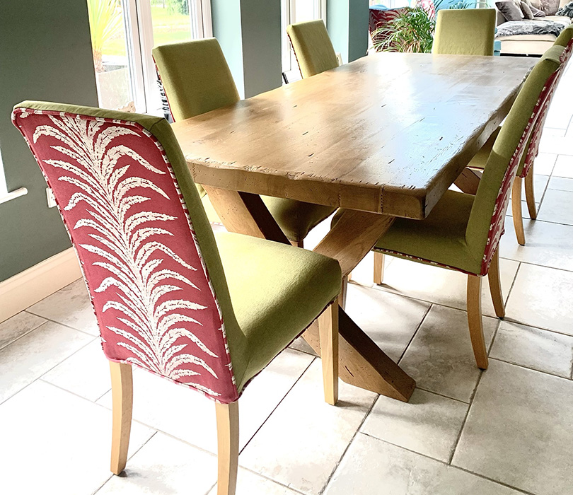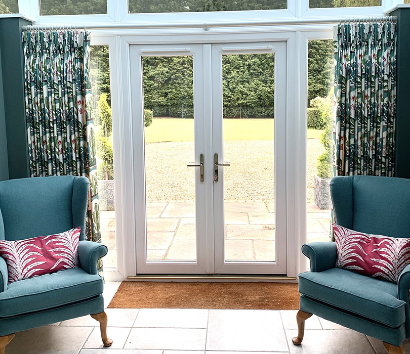 If you had an orangery how would you dress it? This lovely client went for a big bold embroidered pattern, which we managed to follow the design perfectly across the room.