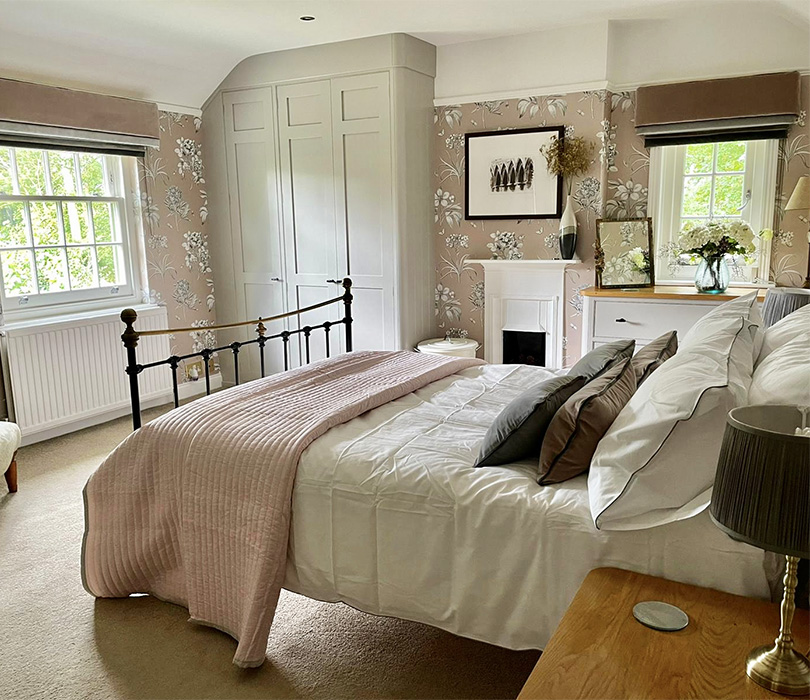 This clients wallpaper set the tone for the bedroom design and the luxurious trio of velvets added texture and layers to compliment and finish this stunning bedroom.
